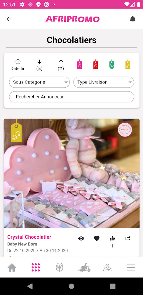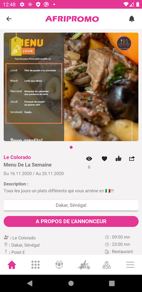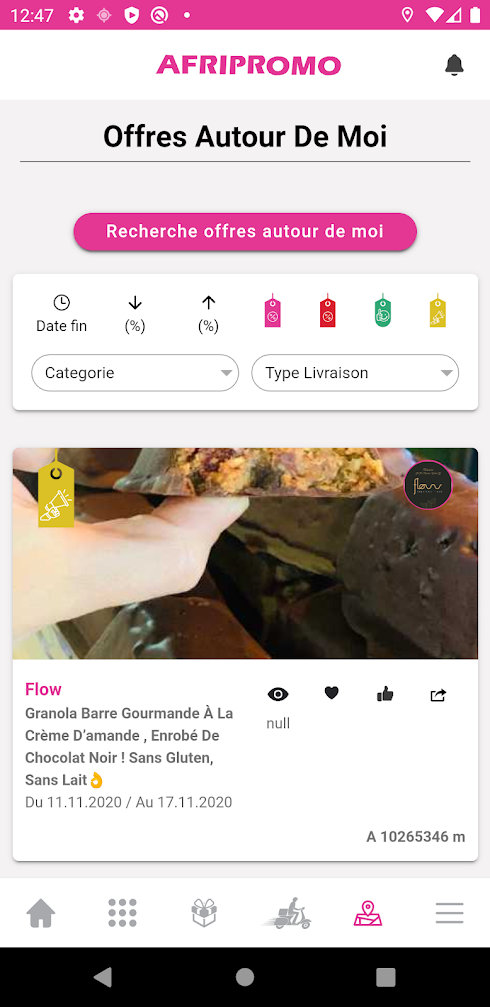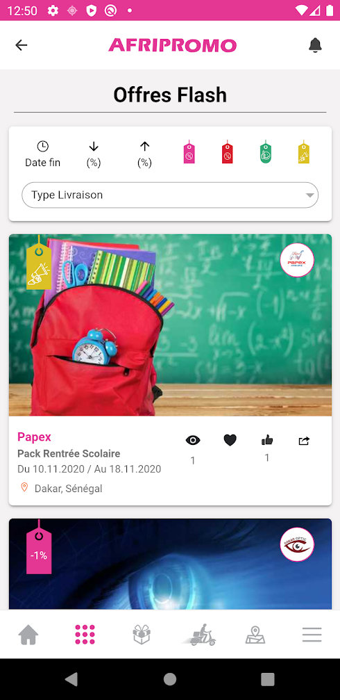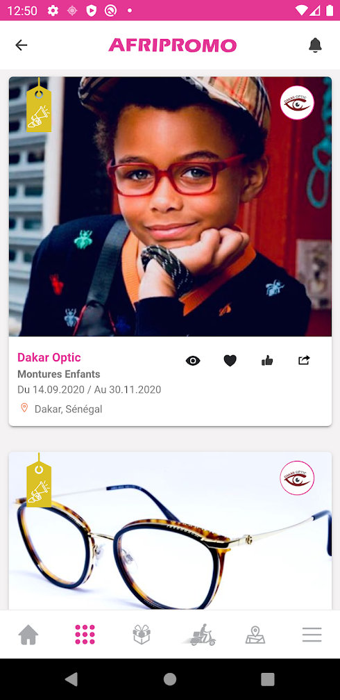 Première plateforme digitale de diffusion d’offres promotionnelles au Sénégal, Afripromo est une application qui permet aux utilisateurs de retrouver des promotions faites par tous types de commerces.